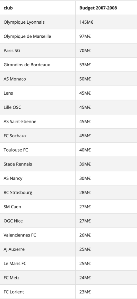 Cependant nous pouvons constater que l’augmentation de la moyenne de budget ne peut s’expliquer que par le rachat du PSG. En 2007, seul l’OL détenait un budget supérieur à 100 millions d’euros. Lors de la saison 2022-2023, 6 clubs (PSG, OL, OM, AS Monaco, OGC Nice, Lille OSC) détiennent un budget prévisionnel de 100 millions d’euros ou plus. L’augmentation des droits TV semblent donc avoir profité aux plus gros clubs du championnat mais pas seulement.