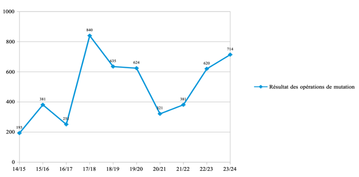Évolution du résultat des opérations de mutation (en millions d'euros) :