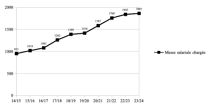 Évolution de la masse salariale chargée (en millions d'euros) :